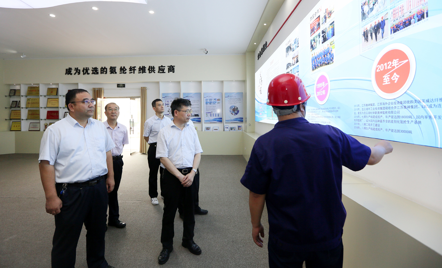 7月29日,副市長李振峰在集團(tuán)考察調(diào)研改革發(fā)展工作,強(qiáng)調(diào)要緊緊抓住連云港市新一輪發(fā)展機(jī)遇,聚焦主責(zé)主業(yè),聚力做大做強(qiáng),為全市經(jīng)濟(jì)社會發(fā)展貢獻(xiàn)更多的工投力量。集團(tuán)公司黨委書記、董事長楊龍,總經(jīng)理胡建明等領(lǐng)導(dǎo)班子成員參加調(diào)研。 李振峰一行先后走進(jìn)氯堿公司、氨綸公司和奧神新材料公司,實(shí)地察看精細(xì)化管理和生產(chǎn)流程現(xiàn)場,詳細(xì)了解各企業(yè)生產(chǎn)經(jīng)營、市場開發(fā)、項(xiàng)目建設(shè)等情況。在聽取集團(tuán)公司運(yùn)營情況匯報(bào)后,他指出,工投集團(tuán)成立以來,積極履行國企發(fā)展責(zé)任和社會責(zé)任,服從服務(wù)于全市發(fā)展大局,產(chǎn)業(yè)發(fā)展態(tài)勢向好、競爭能力明顯增強(qiáng),交出了一份合格的工投答卷。