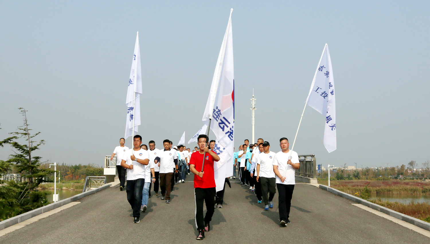 金秋十月,丹桂飄香。10月24日上午,美麗的徐圩新區(qū)云湖廣場(chǎng)彩旗招展,歌聲飛揚(yáng),為慶祝中華人民共和國(guó)成立70周年,豐富職工業(yè)余文化生活,由集團(tuán)公司、集團(tuán)公司工會(huì)主辦,徐圩投資公司承辦的集團(tuán)第二屆職工健身運(yùn)動(dòng)會(huì)開幕式暨健步走活動(dòng)在這里隆重舉行。集團(tuán)公司黨委書記、董事長(zhǎng)楊龍宣布第二屆職工健身運(yùn)動(dòng)會(huì)開幕,并為健步走活動(dòng)發(fā)令??偨?jīng)理胡建明致開幕詞。工會(huì)主席劉承志主持開幕式。 本次運(yùn)動(dòng)會(huì)圍繞“美麗中華·文明工投·快樂職工”活動(dòng)主題,來自全公司各條戰(zhàn)線的17支代表隊(duì)1200多人次的運(yùn)動(dòng)員參加拔河、跳繩、乒乓球、健步走等項(xiàng)目的角逐。他們以勇奪第一、超越自我的競(jìng)賽精神和攜手奮進(jìn)、合力拼搏的競(jìng)賽風(fēng)尚,充分展示工投人追求卓越、共建和諧的優(yōu)秀精神風(fēng)貌。本次運(yùn)動(dòng)會(huì)將對(duì)個(gè)人單項(xiàng)比賽前六名、集體項(xiàng)目比賽前三名及道德風(fēng)尚獎(jiǎng)獲得者給予表彰。