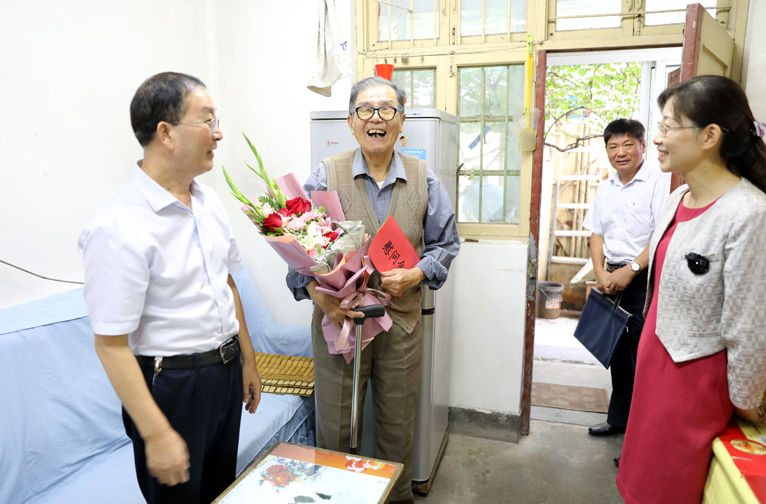 國慶前夕,9月29日上午,集團公司董事長、黨委書記楊龍,總經理胡建明、黨委副書記戴鴻鳴、紀委書記汪群等領導分組走訪慰問部分建國前參加工作的老黨員、老干部,為他們送去慰問金和鮮花,同慶新中國七十周歲華誕。
