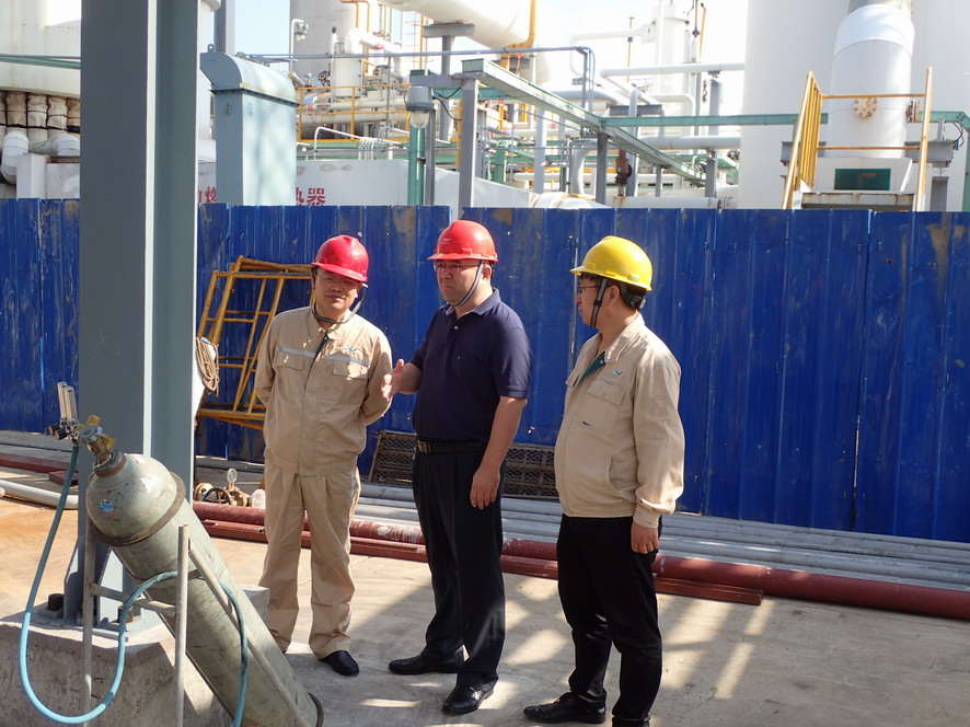 楊龍一行實(shí)地查看了氯堿公司氫氣純化技改項(xiàng)目、天然氣制氫壓縮機(jī)廠房現(xiàn)場(chǎng)和氨綸公司精制罐區(qū)、危廢庫(kù)等重點(diǎn)區(qū)域,就相關(guān)設(shè)備運(yùn)行、安全防范情況進(jìn)行詳細(xì)了解。楊龍強(qiáng)調(diào),新中國(guó)成立70周年即將到來,要把安全工作當(dāng)成一項(xiàng)重要的政治任務(wù),認(rèn)真做好各個(gè)重點(diǎn)部位、關(guān)鍵裝置等環(huán)節(jié)的排查和治理,提高專業(yè)化水平,做到立行立改。要提高安全生產(chǎn)意識(shí),認(rèn)真落實(shí)好安全檢查、節(jié)假日應(yīng)急管理和值班制度,強(qiáng)化對(duì)設(shè)備的檢查維護(hù)和隱患整改,確保節(jié)日期間安全生產(chǎn)平穩(wěn)運(yùn)行。