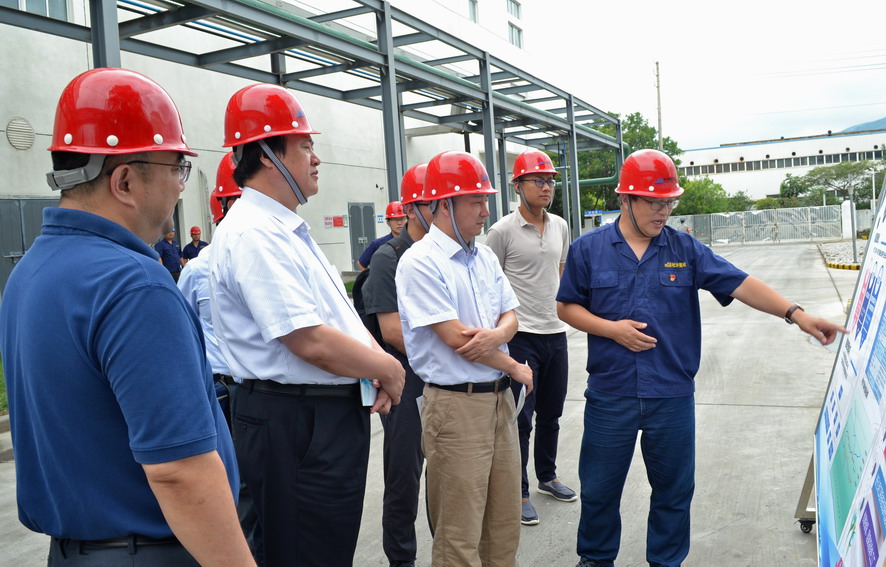 8月12日,省統(tǒng)計局副局長周國強率省政府能源消耗“雙控”目標(biāo)現(xiàn)場考核組到氨綸公司調(diào)研,副市長徐家保陪同調(diào)研,市工信局局長、黨組書記董作村,集團公司董事長、黨委書記楊龍參與陪同。考核組一行深入氨綸公司分布式能源、八期生產(chǎn)現(xiàn)場、自動包裝線等一線生產(chǎn)區(qū),詳細了解公司十三五期間“三步走”能源規(guī)劃、能源管理體系建設(shè)、節(jié)能降耗工作等情況。周國強對氨綸公司在行業(yè)內(nèi)首創(chuàng)利用分布式能源的做法表示贊賞,并鼓勵公司要進一步完善能源管理體系建設(shè),堅持走綠色發(fā)展道路,持續(xù)降低單位產(chǎn)品能耗。