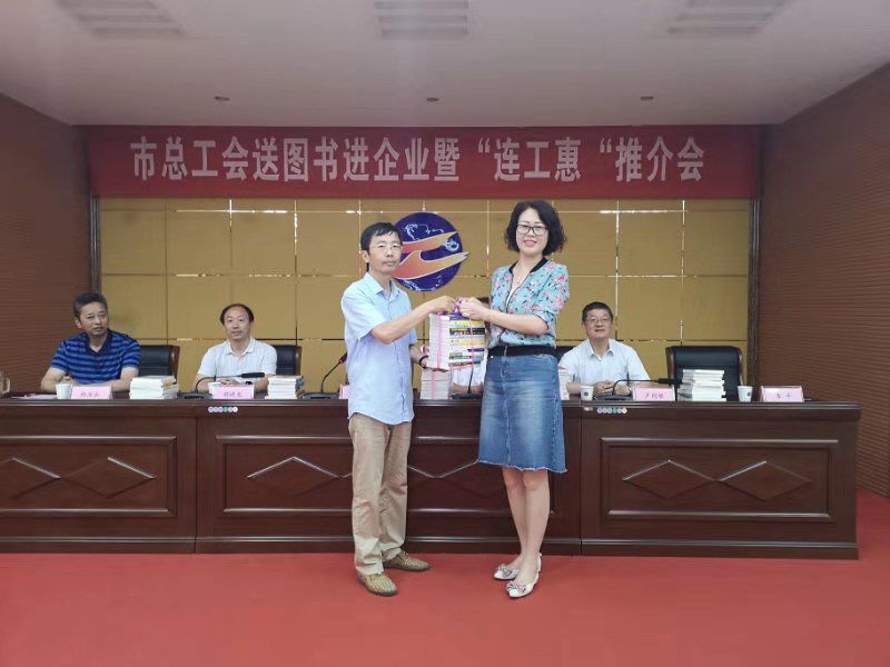 7月23日,連云港市總工會副主席孫月春一行,到市工業(yè)投資集團(tuán)開展贈書活動。集團(tuán)公司工會主席劉承志參加活動。