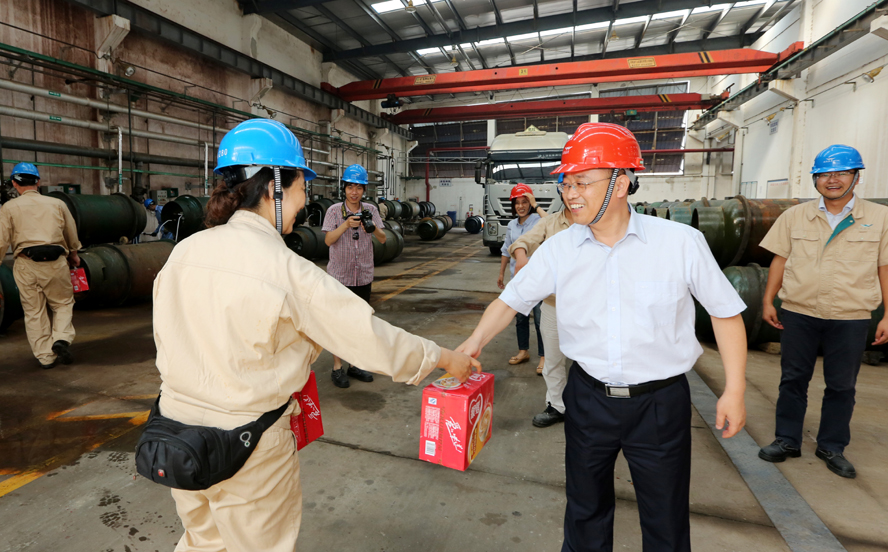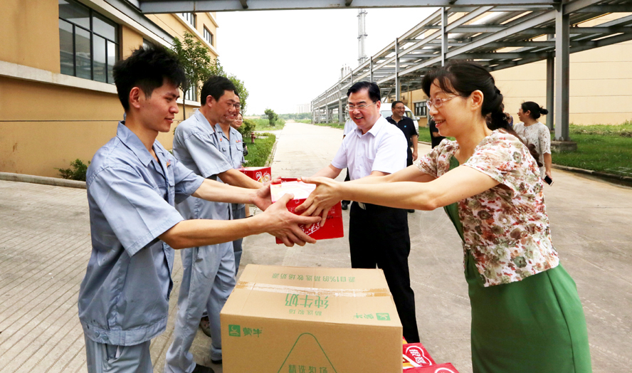 炎炎夏日送清涼,點(diǎn)滴關(guān)愛暖人心。連日來(lái),驕陽(yáng)似火,酷暑難耐。7月18-20日,集團(tuán)公司領(lǐng)導(dǎo)楊龍、胡建明、張其海、朱天松、戴鴻鳴、汪群、匡友本等輕車簡(jiǎn)從,分赴基層一線,進(jìn)車間、入工地、到灘(田)頭,慰問在高溫下堅(jiān)守崗位的廣大員工,送去綠豆、白糖等防暑降溫品,在炎炎夏日中將“清涼”送到職工心坎上。