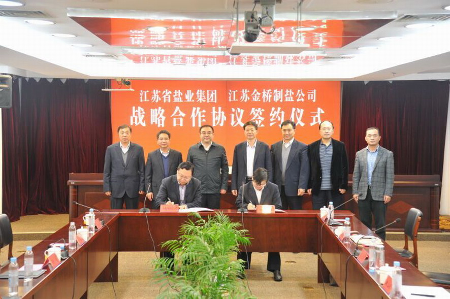11月8日下午,金橋制鹽公司在南京與江蘇省鹽業(yè)集團(tuán)簽署戰(zhàn)略合作協(xié)議。集團(tuán)公司董事長、黨委書記楊龍,副總經(jīng)理?xiàng)顕乱约敖饦蛑汽}公司負(fù)責(zé)人參加了簽約儀式。簽約儀式前,楊龍董事長與省鹽業(yè)集團(tuán)總經(jīng)理唐正東、副總經(jīng)理鄭海龍以及相關(guān)部門負(fù)責(zé)人就應(yīng)對食鹽改革舉行了工作會談。