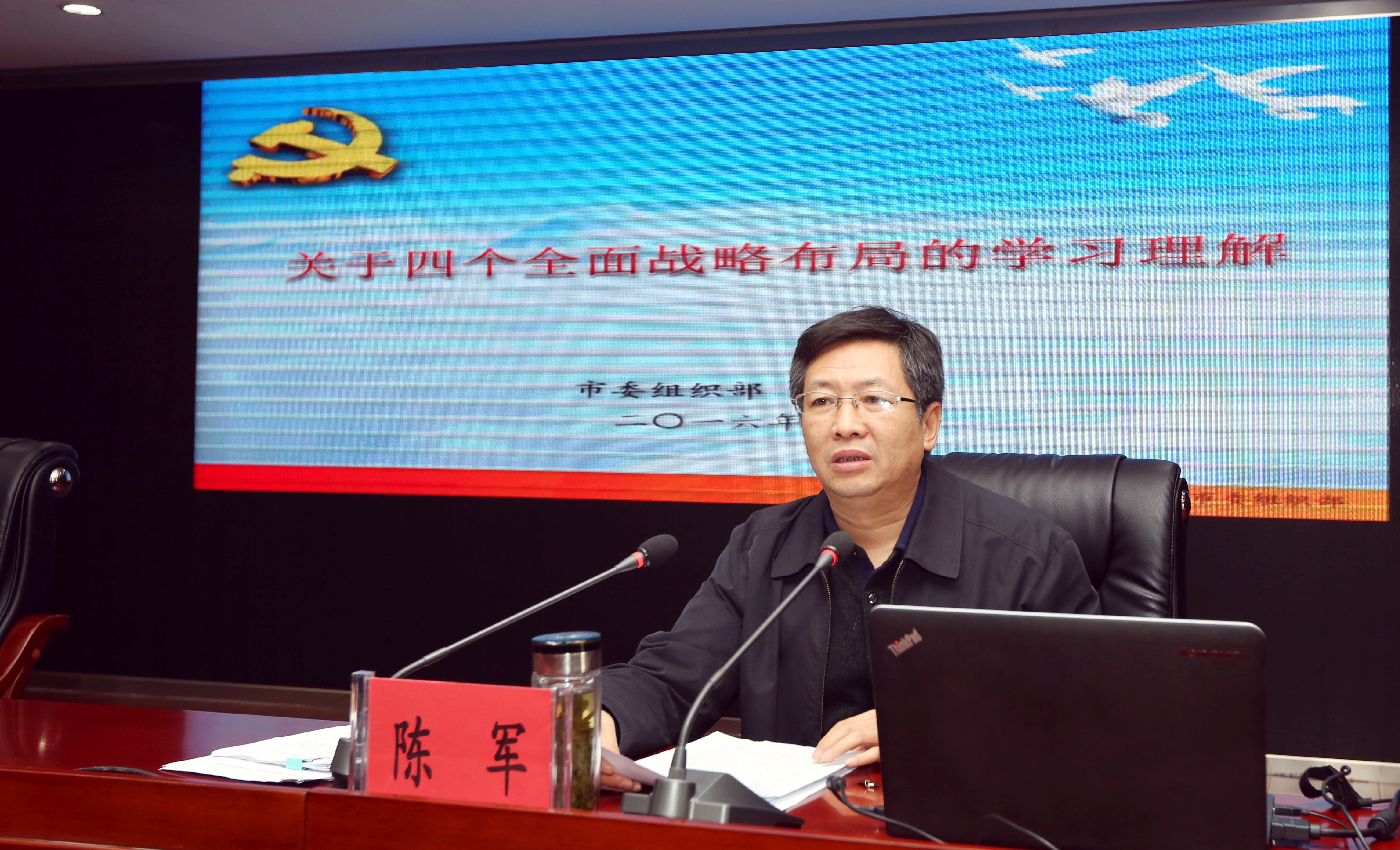 11月4日下午,集團公司黨委召開中心組學(xué)習(xí)(擴大)會,邀請市委組織部副部長、市委黨建辦主任、組織員辦公室主任陳軍就“四個全面”的學(xué)習(xí)和理解作專題輔導(dǎo)報告。集公司黨委書記、董事長楊龍主持會議,集團公司領(lǐng)導(dǎo)班子成員,各權(quán)屬單位領(lǐng)導(dǎo)班子成員、黨群有關(guān)部門負(fù)責(zé)人,集團總部全體管理人員參加會議。