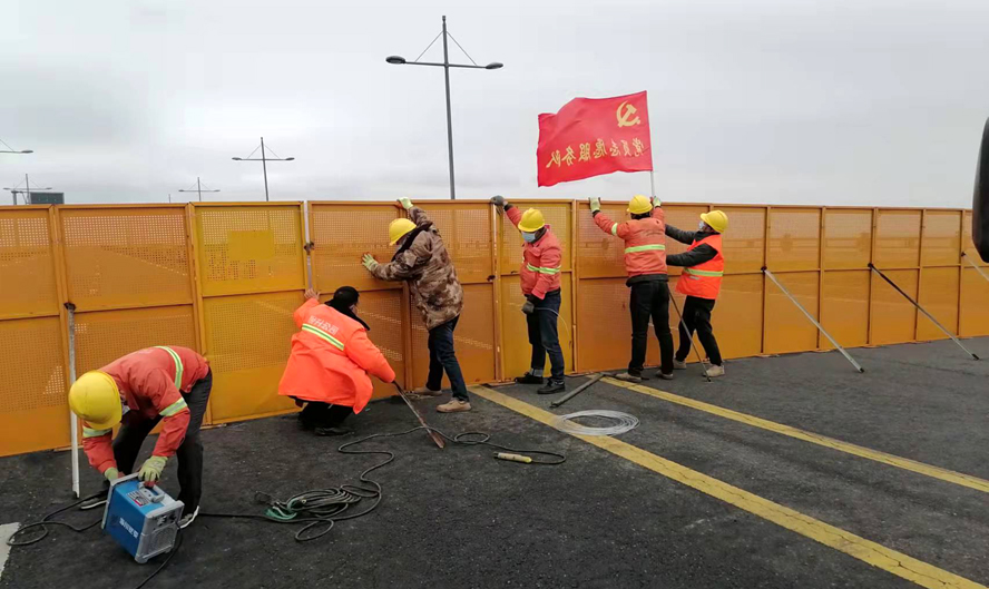 安裝加固步步到位。“今天市政在崗9人?!?/span>17號一大早,市政經(jīng)理高峰就準時在公司防疫管理群里報告人數(shù)??墒谴藭r這崗位卻設在狂風凌洌、無遮無擋的海濱大道上。肆虐的狂風吹倒了許多防護欄,從清晨開始,高峰就帶領市政突擊隊沿著合作路、海濱大道等八個路段一路巡查一路搶修。面對狼藉的現(xiàn)場,高峰沉著冷靜,有條不紊地帶著大家用力地扶起扶正,再加樁固定。施工現(xiàn)場,風聲伴著加油的號聲、汗水伴著有節(jié)奏地敲擊聲,這場景,不正是一幅感人的“錚錚鐵骨鑄堅壁”的動人畫卷嗎?自3月5日疫情襲來,市政突擊隊就馬不停蹄地奮戰(zhàn)在新區(qū)的各個角落。施工期間,高峰他們白天黑夜地連軸轉(zhuǎn),中午來不及休息便蹲在路邊吃快餐,為了搶工期,有時竟加班到深夜12點。短短的10天,他們在做好其他市政服務工作的同時,已經(jīng)先后安裝完成了2000多米的道路圍擋,讓病疫“無路可逃”。