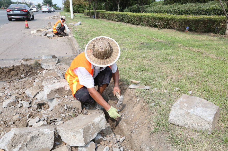 位于連云港東站附近的新光路,是開發(fā)區(qū)境內的一條主要運輸道路,經常有重型卡車經過,每天川流不息的車輛不僅給道路增加了運載負荷,也使得道路兩旁的路牙石、人行道磚等受碾壓、撞擊、剮蹭等因素影響,破損非常嚴重。為了加快工程進度,降低人工成本,工程項目部在該路段采取機械施工的方式,很大程度上的提高了項目進度。在項目開展過程中,工程項目部的人員也遇到了許多的困難,新光路由于地處火車站附近,平常車流量大,在施工過程中要注意對來往車輛進行避讓;另外,由于該路段臨近新光小區(qū)、瀾庭觀邸等住宅區(qū),早晚上下班的居民也限制了施工時間短。雖然面臨種種困難,盛達市政公司的施工人員沒有埋怨,而是想方設法去克服。自8月24日開工以來,截止目前,總長近6000米路段內的路牙石以及人行道磚的清理工作已經全部完成,下階段,工程項目部還將安排人員進行新路牙石與人行道磚的更換工作,并將開展附近其他道路的修復工作,確保將“創(chuàng)衛(wèi)”工作的開展落實到實處。
