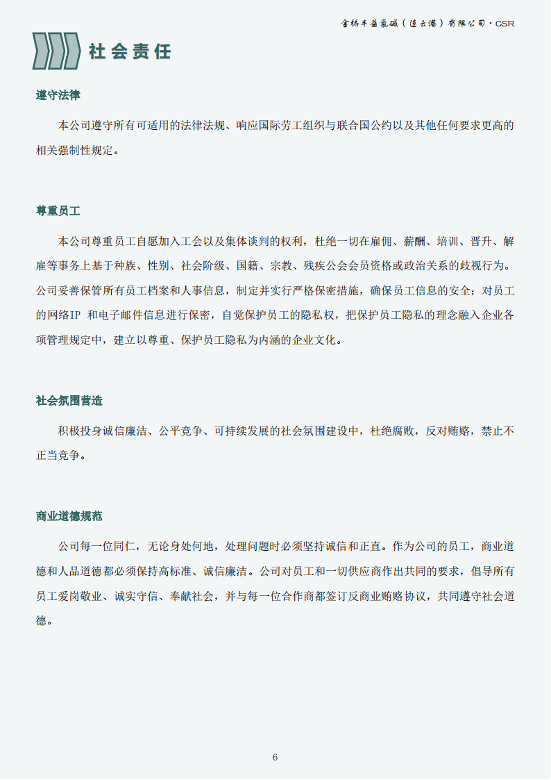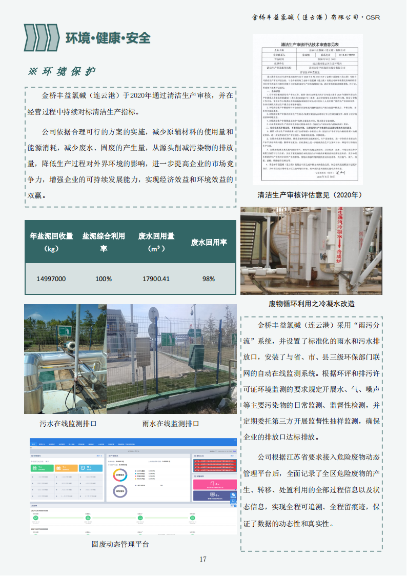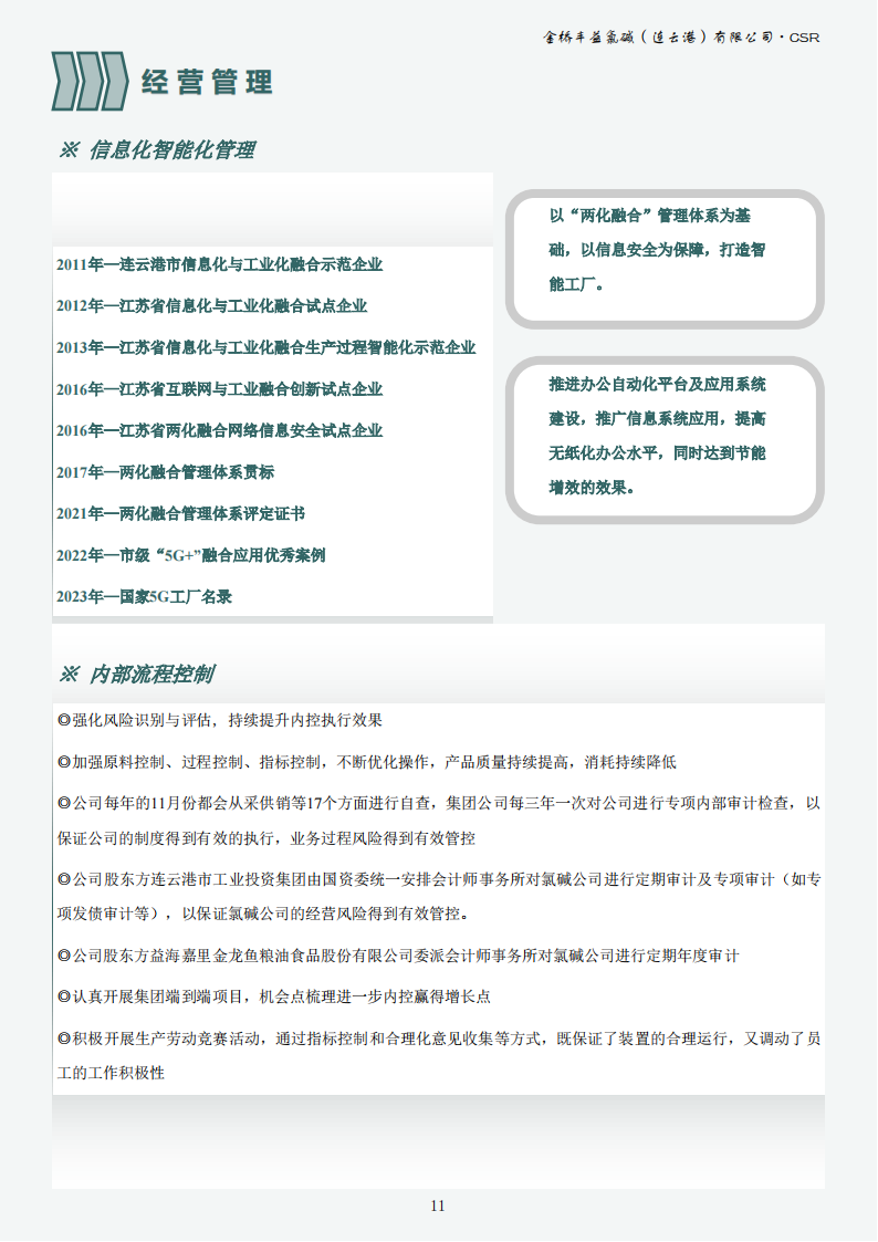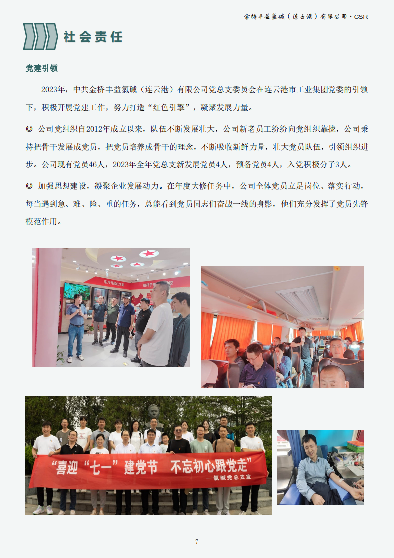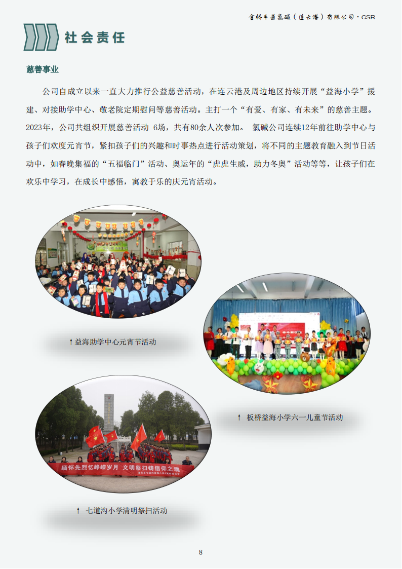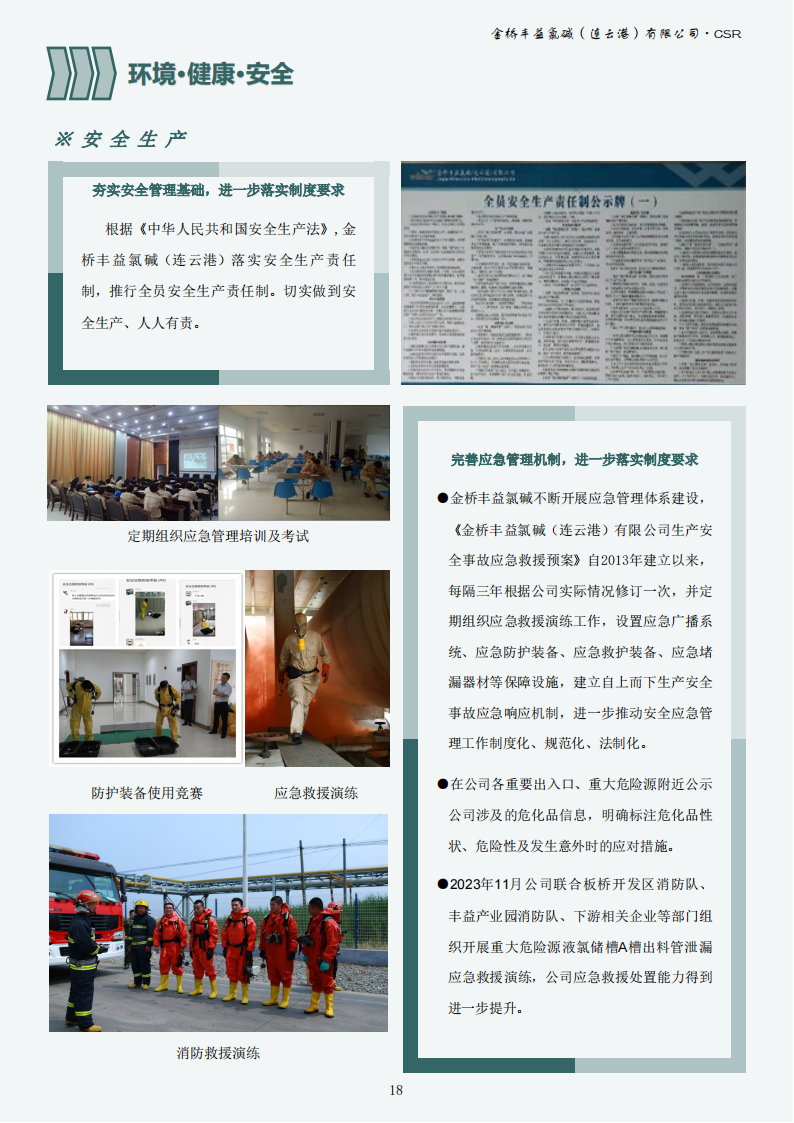 金橋豐益氯堿(連云港)有限公司2023年可持續(xù)發(fā)展報告公示