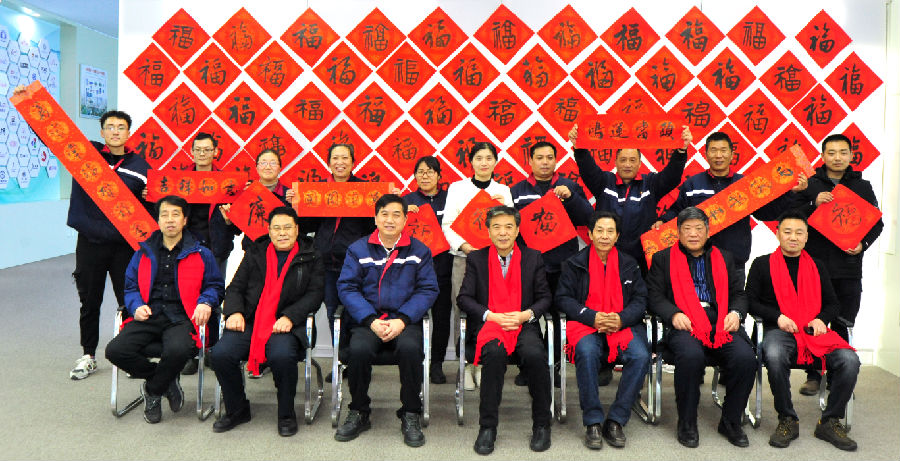 長(zhǎng)桌排開,紅紙鋪就,一時(shí)翰墨飄香。一句句吉祥佳語(yǔ),一幅幅精美書作,飽含濃濃年味,盡展書法藝術(shù)的魅力?!伴L(zhǎng)培松竹留清韻,惟賴詩(shī)書發(fā)異香。”展現(xiàn)了氨綸人傳承文化知識(shí)的追求、對(duì)高潔品格的向往;“虎步奔騰開勝景,春風(fēng)浩蕩展宏圖?!憋柡藢?duì)公司發(fā)展萬象更新、蒸蒸日上的祝福;“人和政善千家福,國(guó)富民強(qiáng)四海春?!奔耐辛嗽邳h的正確領(lǐng)導(dǎo)下,人們對(duì)美好生活的愿景。排隊(duì)領(lǐng)春聯(lián)領(lǐng)福字的職工拿到這些寓意著美好吉祥的春聯(lián),臉上掛滿了笑容,紛紛拍照留念。歡快的音樂,喜慶的春聯(lián),火紅的燈籠交相輝映,現(xiàn)場(chǎng)一片歡聲笑語(yǔ),熱鬧非凡。