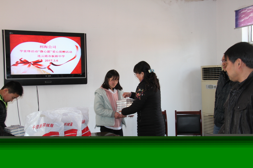36日下午,利海公司按連云區(qū)“學(xué)雷鋒志愿服務(wù)月”活動(dòng)內(nèi)容,主動(dòng)聯(lián)系板橋中學(xué),了解到有部分貧困學(xué)生的實(shí)際困難后,積極與學(xué)校開展圓夢(mèng)“微心愿”活動(dòng),為他們送去棉衣與書籍等學(xué)生們心中的“微心愿”。