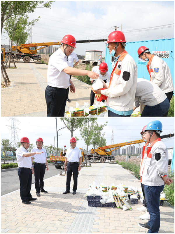 7月28日上午,集團(tuán)公司黨委副書記戴鴻鳴、工會主席劉承志一行,深入公司施工一線走訪慰問職工,把綠豆、牛奶等防暑降溫用品送到他們手中,在炎炎夏日,為一線職工送去集團(tuán)公司的深切關(guān)懷。 在臺北工地,戴書記與施工人員親切交談,簡要了解了工程的施工情況,叮囑他們在夏日高溫期間要注意安全,做好防暑降溫措施,確保安全生產(chǎn)和身體健康。(電宣)