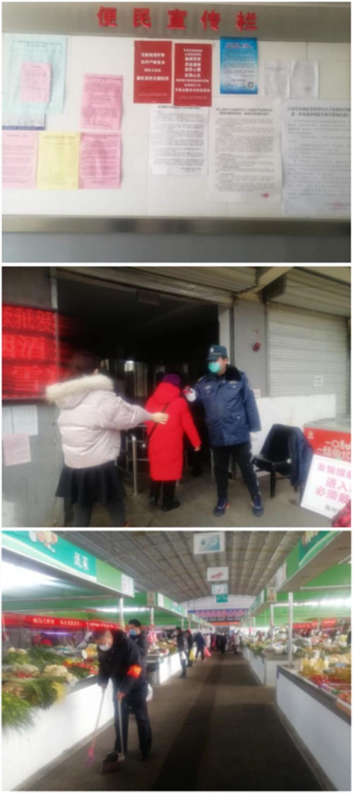 強化市場內(nèi)部管控。為進一步避免人群大規(guī)模聚集,調(diào)整市場開放、關閉時間,緩解人流量,勸導群眾不信謠、不傳謠,無需恐慌搶購。督促農(nóng)貿(mào)市場100多戶經(jīng)營戶每天提前全部做好物資的擺放,所有進出市場人員保留1個進出口通道依次進出,并指派專人在入口負責體溫檢測;對進入市場的等各類車輛實行指定區(qū)域有序停放,確保市場內(nèi)無占道現(xiàn)象。