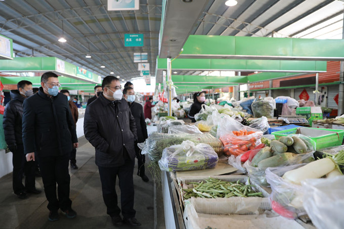為及時掌握疫情,全面落實防控措施,堅決打贏疫情防控阻擊戰(zhàn)。1月30日下午,集團公司黨委書記、董事長楊龍,黨委副書記、總經(jīng)理胡建明,工會主席劉承志、總經(jīng)濟師陳如軍輕車簡從,到巨龍農(nóng)貿(mào)市場防疫第一線實地督導檢查,公司經(jīng)理孫政權(quán)、黨委副書記王志軍、副經(jīng)理伏運余、經(jīng)理助理朱兵陪同視察。
