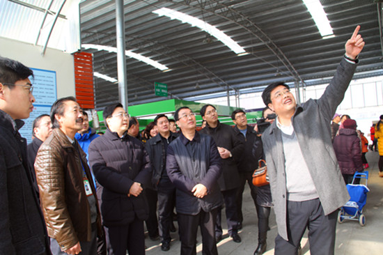 2月14日上午,市長趙曉江率市商務(wù)局、市物價局、市衛(wèi)生局等相關(guān)部門負(fù)責(zé)人,到公司巨龍市場調(diào)研節(jié)日期間市場供應(yīng)等工作。集團公司總經(jīng)理胡建明、園區(qū)事業(yè)部總監(jiān)趙萬明、公司經(jīng)理陳雨華及相關(guān)人員陪同調(diào)研。