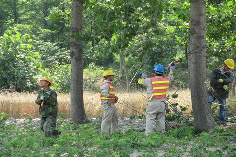 施工現(xiàn)場(chǎng)地形復(fù)雜,跨越路口8處、河線4處、通訊線光纜5處、10KV和0.4KV帶電線路7處,蝦塘10處。公司統(tǒng)一調(diào)度,分工協(xié)作,同步展開。在施工現(xiàn)場(chǎng),指定了專職安全員,各道路、線路跨越處搭設(shè)了防護(hù)架,設(shè)置了臨時(shí)警示牌和警示欄,收緊線過(guò)程中進(jìn)行巡線,確保施工安全。中午,公司在淮鹽大酒店制作工作簡(jiǎn)餐,送到工地,施工人員抽空輪流進(jìn)餐后,就繼續(xù)接著施工,并一直忙到晚上9點(diǎn)。