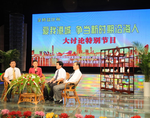 在節(jié)目現場, 顧永庚董事長首先為大家展示了集團公司化工和加工鹽等各種特色產品。其后,顧永庚董事長介紹了集團公司在江蘇沿海開發(fā)戰(zhàn)略實施兩年來所取得的輝煌成就,圍繞沿海開發(fā)過程中金橋鹽化具有的獨特區(qū)域和資源優(yōu)勢、“十二五”發(fā)展目標定位、“創(chuàng)建名牌企業(yè),共架幸福金橋”的奮斗目標等方面與嘉賓、觀眾進行了深入探討。