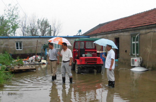 7月9日上午一上班,宋跳農(nóng)場場長趙懷忠?guī)ьI(lǐng)任志明、駱功勛、孫習(xí)年、于懷前等同志檢查場區(qū)和居民區(qū)。在整個暴雨過程中,居民區(qū)房屋沒有發(fā)生險情,但地面積水較多,對個別居民用電不符合規(guī)范的,要求立即整改。清源水泥制品廠的石棉瓦大棚局部有坍塌危險,該場當(dāng)時就下發(fā)整改通知單,限期7月20日前完成。農(nóng)戶棉花地局部受淹,農(nóng)田積水于當(dāng)天下午基本排掉。場區(qū)基本沒有積水,但辦公室在暴雨過程中有漫水現(xiàn)象。職工上班后,清掃辦公室衛(wèi)生,陸續(xù)恢復(fù)正常辦公。(任志明)