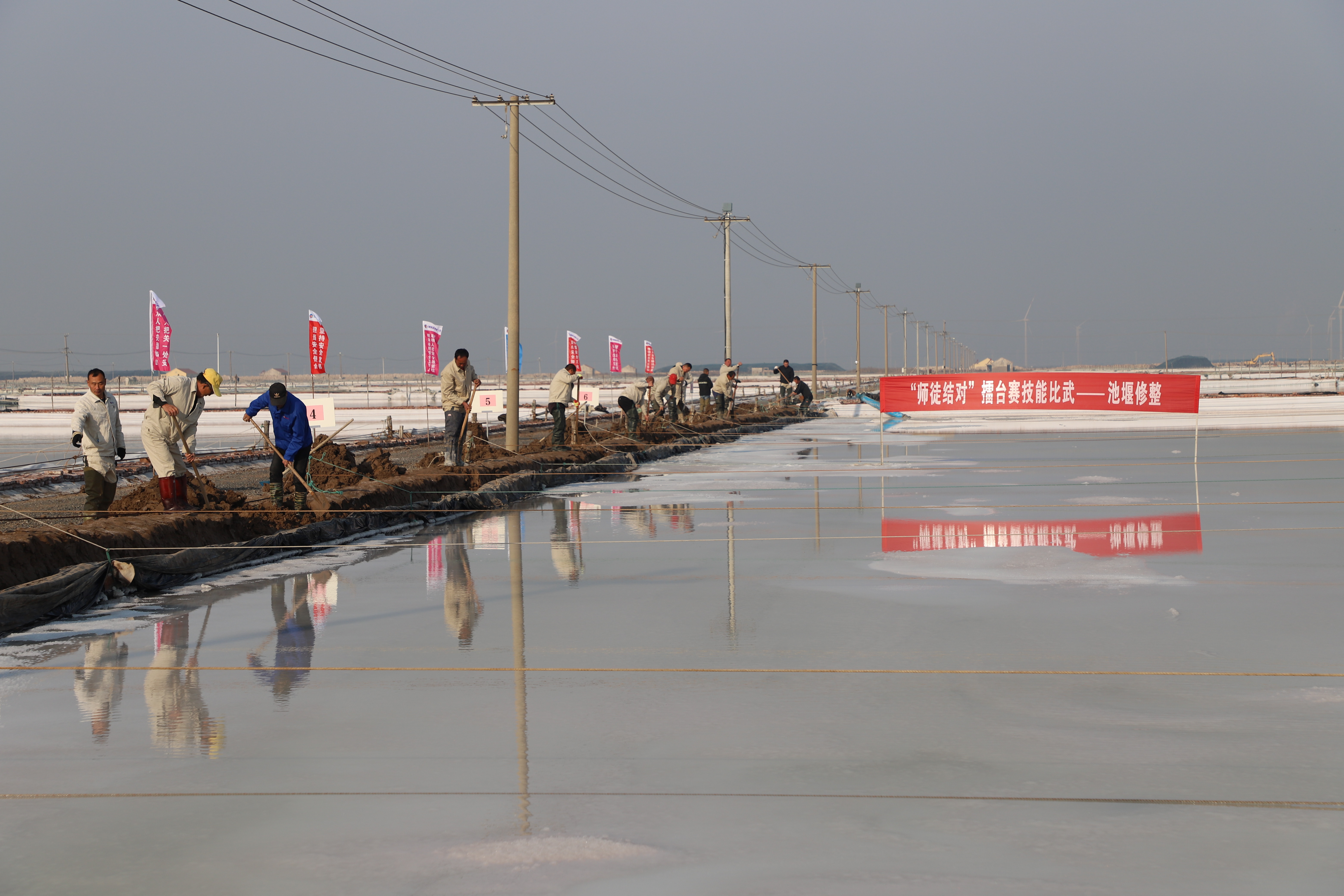 在新河制鹽分公司12班灘頭,常務(wù)副總經(jīng)理徐一林對(duì)冬準(zhǔn)工作提出要求,總經(jīng)理吳衛(wèi)平宣布“‘薪火灌筑 匠星西傳’師徒結(jié)對(duì)擂臺(tái)賽”正式開始!