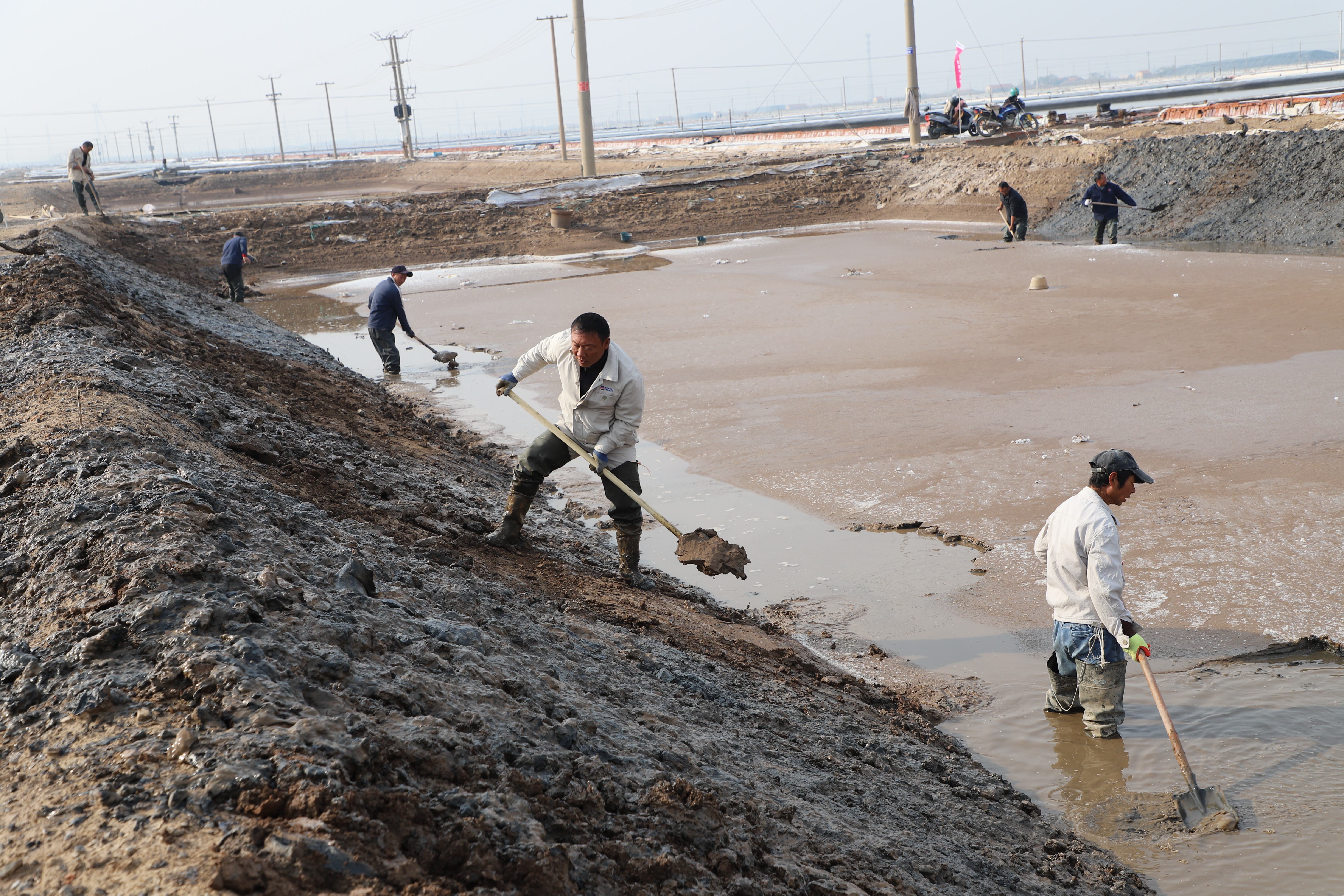 寒冬時(shí)節(jié),暖陽之下,鹽廩之旁,曬得黝黑的鹽場(chǎng)產(chǎn)業(yè)工人們按照競(jìng)賽的考核標(biāo)準(zhǔn),做熟泥、打堰墻、做堰頂,護(hù)埝頂、夯埝坡、清塘底,見證了一場(chǎng)技能比拼的盛會(huì)。經(jīng)過一天的鏖戰(zhàn),盧正兵、靳新邦、匡洪忠?guī)熗饺〉昧顺匮咝拚那叭涣謽滠?、潘成軍、胡繼華師徒取得了土塘清淤的前三名。(西工)