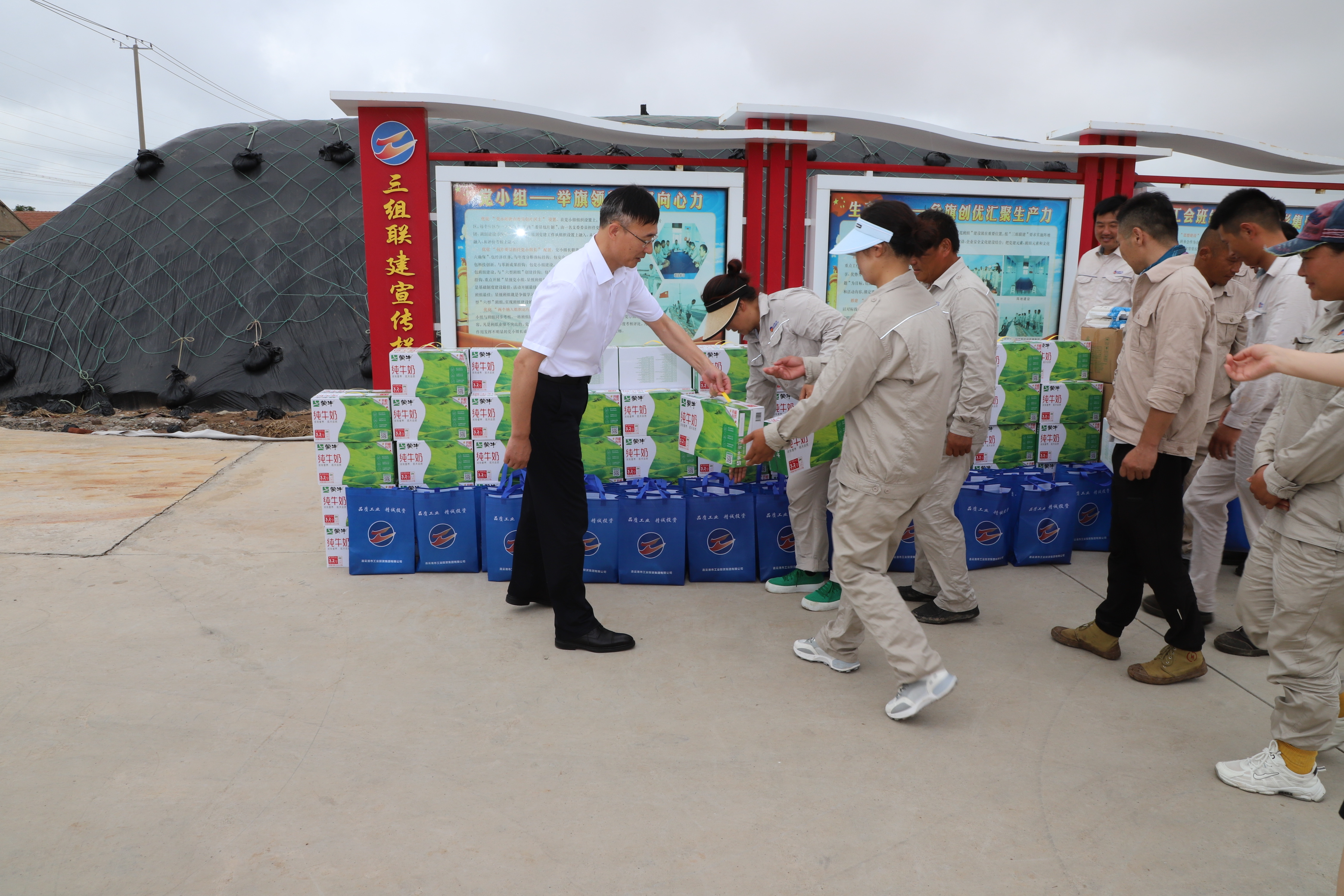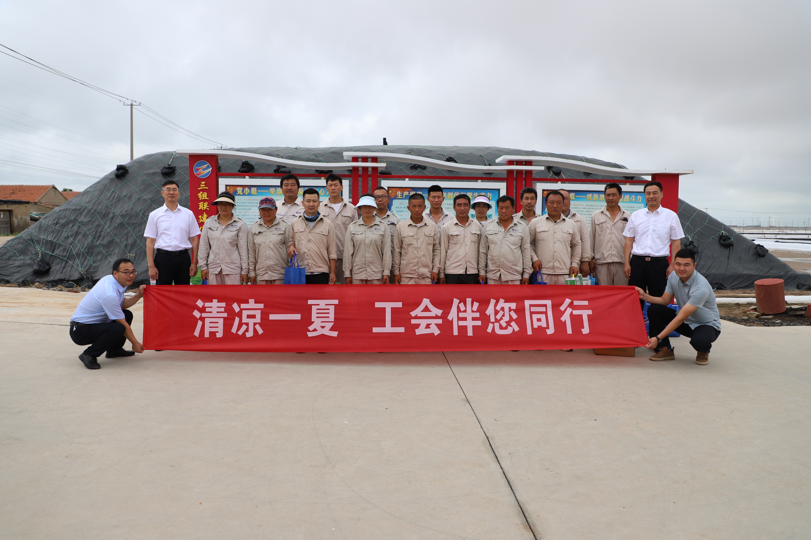 “高溫天氣,大伙兒一定要注意勞逸結(jié)合?!薄案兄x大家的辛勤付出,這些防暑物品僅是我們的一點(diǎn)心意?!睆埩忠恍衼?lái)到日曬制鹽新河分公司八班灘頭,為他們送去綠豆、白糖等慰問(wèn)品。一聲問(wèn)候、幾句家常,緩解了鹽工們的疲憊,讓他們感受到了實(shí)實(shí)在在的溫暖。