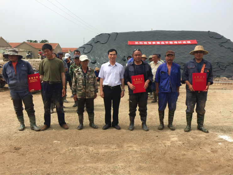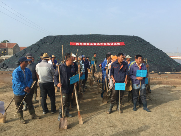 比賽開始前,生產(chǎn)服務(wù)公司經(jīng)理王緒前首先就天溝建設(shè)要求、評分標(biāo)準(zhǔn)等事項(xiàng)進(jìn)行了現(xiàn)場說明。7點(diǎn)20分,隨著裁判員的一聲令下,比賽正式開始。參賽選手們按照賽前抓鬮序號,迅速投入到比賽中。賽場上,每一組選手都分工明確,澆水、翻泥、踩實(shí)、做埝、整平一氣呵成,大家都表現(xiàn)的極為熟練,充分展示了參賽選手扎實(shí)的基本功。比賽中,三位裁判在比賽場地來回巡查,認(rèn)真記錄每一組參賽選手的勞動過程,力求做到公平、公正。9點(diǎn)20分,隨著最后一組選手的工作完成,比賽正式結(jié)束。隨即,三位裁判又根據(jù)比賽過程中的記錄情況結(jié)合最終工程質(zhì)量對每一參賽小組進(jìn)行綜合評分。最終,來自埒南制鹽分公司的章保衛(wèi)、高明成榮獲比賽第一名;江海兵、張春連以及尹步松、汪禮兵兩組選手榮獲第二名;新河制鹽分公司朱明、戴繼明,郁雷敏、李正軍,楊春旭、史春海三組選手榮獲第三名。