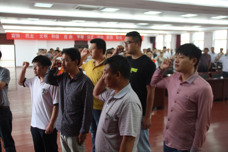 伴隨著雄壯的《義勇軍進(jìn)行曲》,表彰大會(huì)正式拉開(kāi)帷幕,在黨建工作部部長(zhǎng)卜海的帶領(lǐng)下,6名新黨員面對(duì)鮮紅的黨旗莊嚴(yán)宣誓,與會(huì)老黨員共同舉起右拳,重溫入黨誓詞。新黨員代表吳凱、老黨員代表靳國(guó)祥分別代表新老黨員做表態(tài)發(fā)言。隨后,黨委副書(shū)記王保平宣布表彰決定,對(duì)新河黨支部等5個(gè)先進(jìn)黨支部、吳慶剛等20名優(yōu)秀共產(chǎn)黨員和季興勝等5名優(yōu)秀黨務(wù)工作者進(jìn)行表彰。
