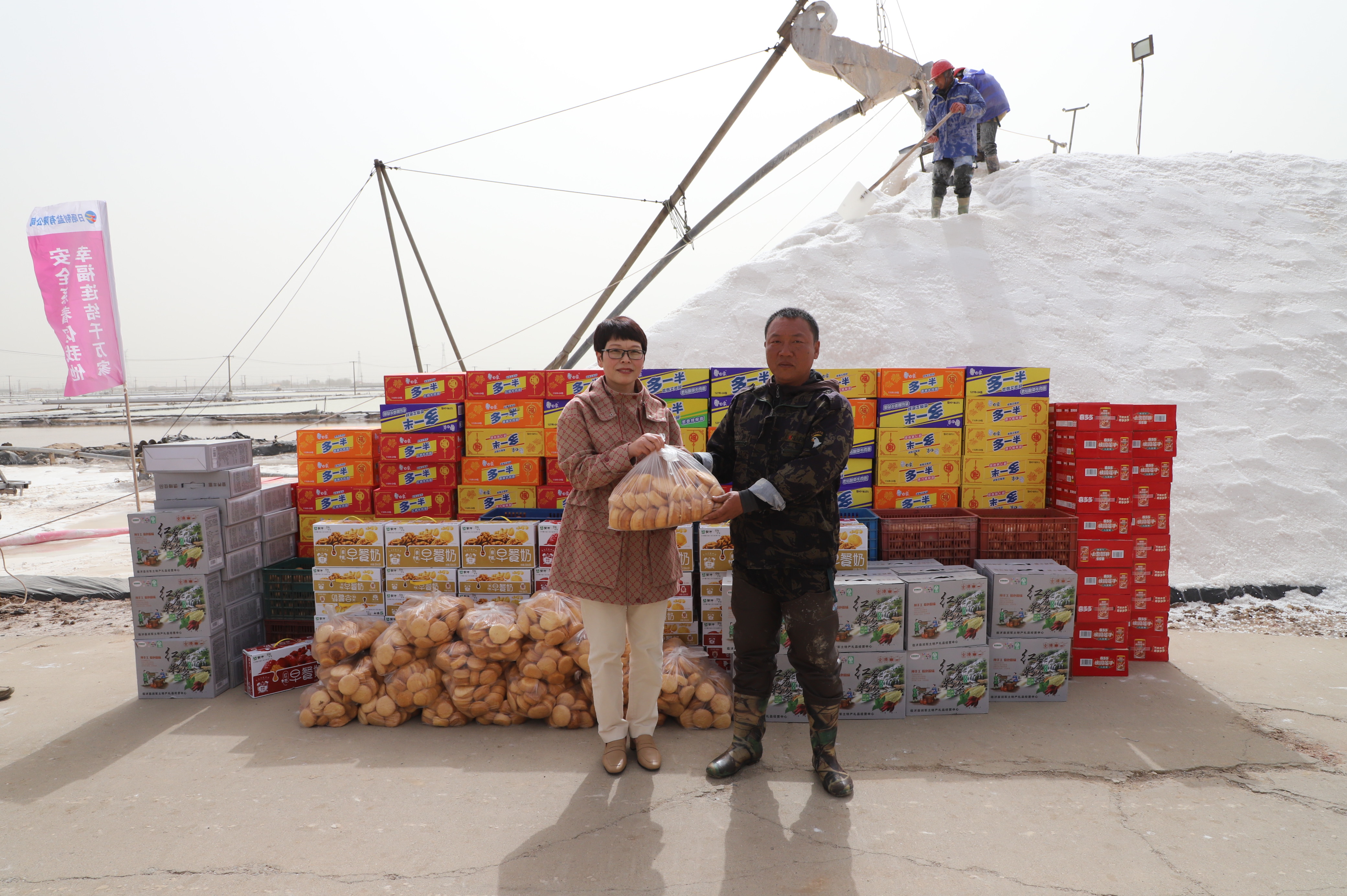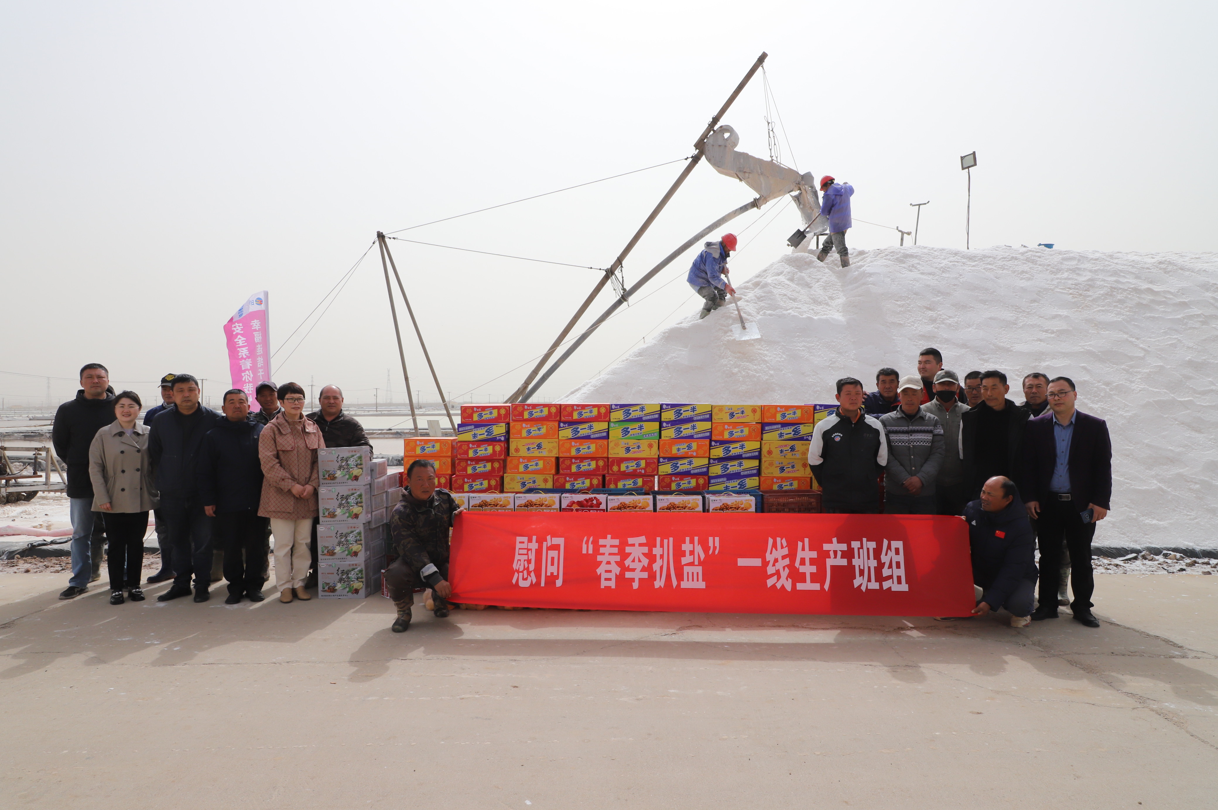“你們辛苦了,我代表公司來看望大家?!痹谛潞泳虐嗯c埒南九班,王宏與扒鹽現(xiàn)場職工握手問好,感謝他們在過去的一年為日曬制鹽公司的原鹽生產(chǎn)所付出的辛勤努力,叮囑他們一定要落實落細扒鹽生產(chǎn)措施,增強責任感和警覺性,嚴格執(zhí)行各項規(guī)章制度,切實保障扒鹽期間的安全生產(chǎn),并送上雞蛋、八寶粥、方便面、牛奶等物品。