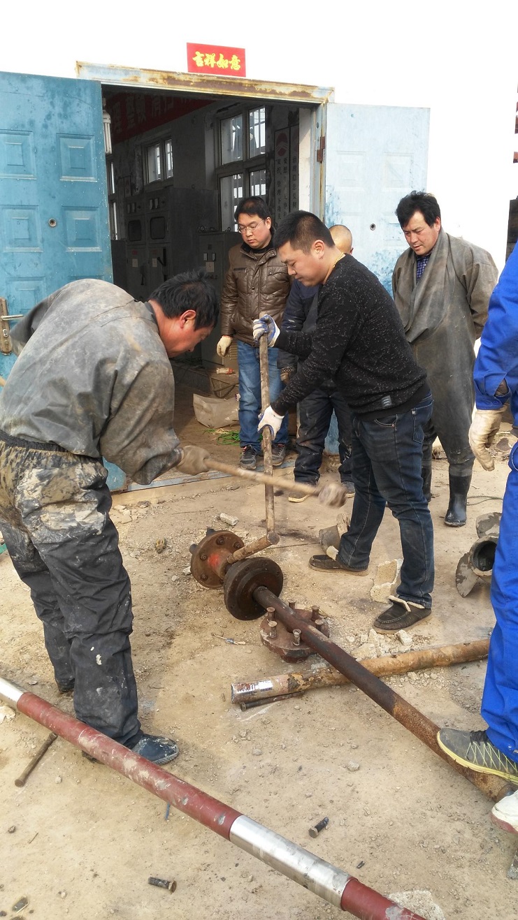 為確保3月底西旺公司淡水供給,從3月中旬開始,機電服務公司組織人力,對4臺55KW水泵進行大修。在市勞模王緒華帶領下,機修人員范成軍、黨員楊軍、蘇輝等不怕臟和累,舊配件拆除、新配件組裝,每個環(huán)節(jié)都能做到安全、認真、仔細。經(jīng)過10天多搶修,4臺機泵大修結束,為正常開機揚水提供了保障。(圖為大修現(xiàn)場)