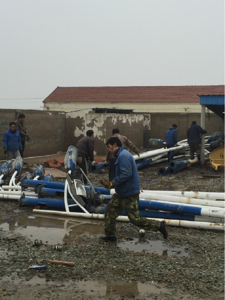 (上圖為標準化廠房的廢棄鋼材運送到日曬制鹽3場后家院,機械設(shè)備服務(wù)中心職工一起搬運鋼材。)