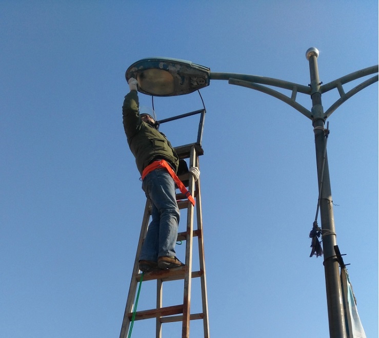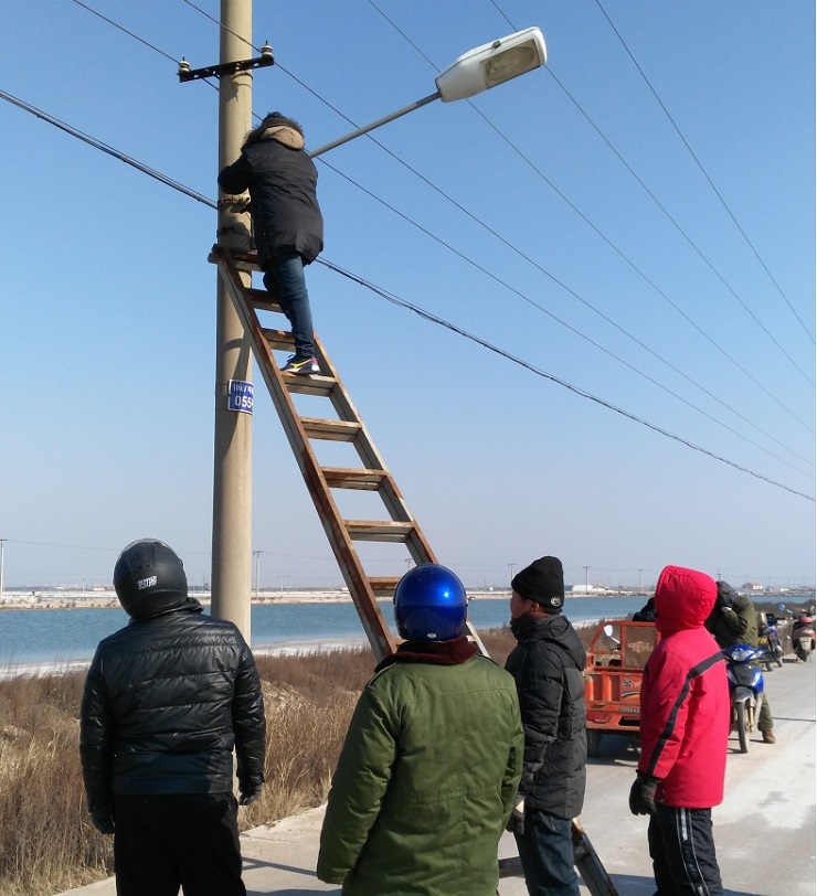 為增添節(jié)日氣氛,亮化場區(qū),機械設(shè)備服務(wù)中心接到場區(qū)及日曬鹽道路路燈維修任務(wù)后,班子成員高度重視,認(rèn)真組織,積極籌備維修配件,并結(jié)合天氣形勢,對需要修理的60盞路燈,采取分段實施的辦法,于1月25日開始,他們本著安全第一的原則,搶時間爭速度,對日曬鹽道路路燈展開維修工作,繼而對場區(qū)中二圩街道路燈進(jìn)行維修,職工們不畏嚴(yán)寒,加班加點,到1月31日將全部路燈維修結(jié)束。(圖為修理現(xiàn)場)