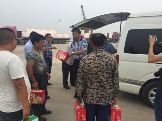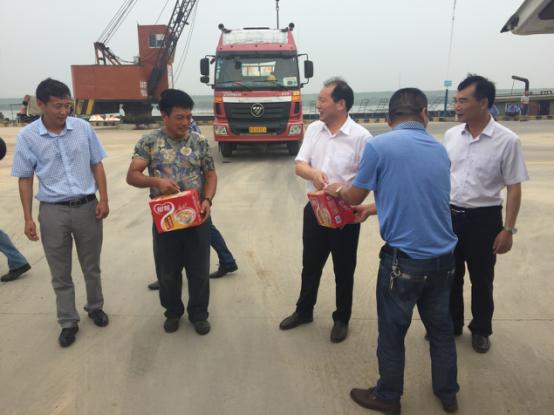 2017年7月18日星期二下午灌西鹽場投資公司領(lǐng)導(dǎo)到宵洋物流有限公司碼頭送清涼看望一線員工!在黨委書記董事長王德志同志、總經(jīng)理李國文同志、工會主席王保平同志的帶領(lǐng)下親自到我宵洋物流有限公司碼頭看望一線員工,送清涼。炎炎夏日,酷暑當(dāng)頭一線員工永遠沖鋒在前,領(lǐng)導(dǎo)的關(guān)懷更是永不停止!宵洋物流全體員工致謝!(宵洋王然)
