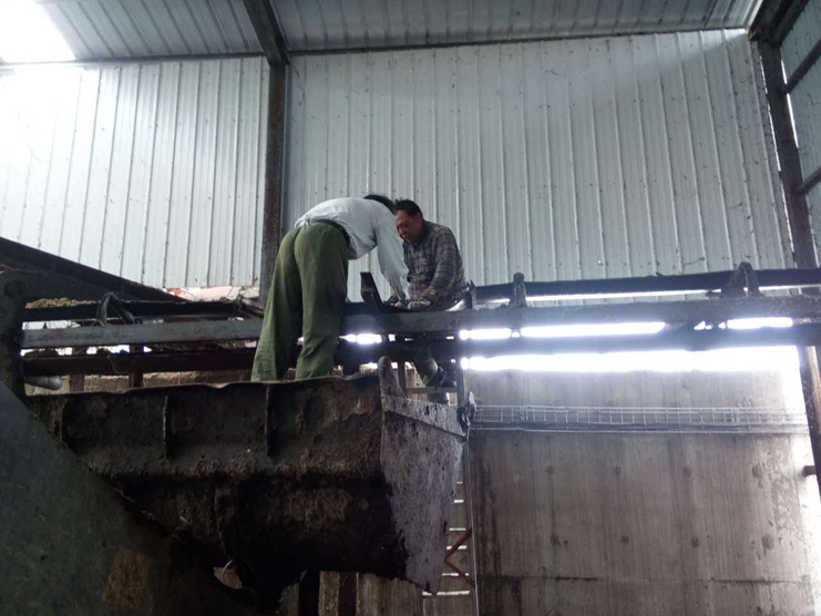 “叮……”,一陣急促的電話鈴聲驚醒了綠淮公司蔣玉柱。拿起手機,時間顯示13點05分,來電人是北歐農(nóng)莊外圍組組長常師傅。蔣玉柱迅速按鍵接聽電話。“豬糞原料的輸送帶損壞,如不及時搶修豬舍恐怕溢出,能否請你們協(xié)助維修”。常師傅著急的說道。此時的蔣玉柱睡意全無,他掛掉電話,像往常一樣,撥通了王超和王大從的電話。10分鐘后,3個人就聚集在辦公室,帶上工具、手套、鑰匙、配件,駕駛車輛向北歐農(nóng)莊出發(fā)。到現(xiàn)場查看后,發(fā)現(xiàn)是輸送帶錯位導致。幾個人商量了一下后,決定先停止輸送帶操作,由王大從開來裝載機,將維修人員“升”至高處,大家分工明確,各司其職,邊調(diào)整邊運行,經(jīng)過1小半時大汗淋漓奮戰(zhàn),下午3點多設備運行正常。此時,從田地剛回來的丹麥人布萊恩對著他們豎起了大拇指。(蘇北)