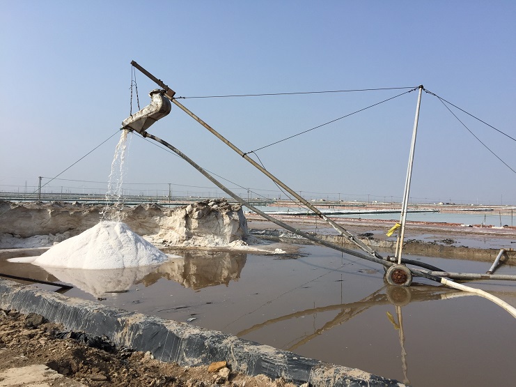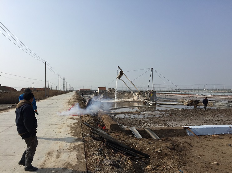 2月25日上午九點(diǎn)十八分,伴隨著鞭炮聲清脆響起,新河制鹽分公司五班二號扒鹽機(jī)組輸鹽大架銀瀑飛濺,拉開了新河制鹽春季扒鹽的序幕。