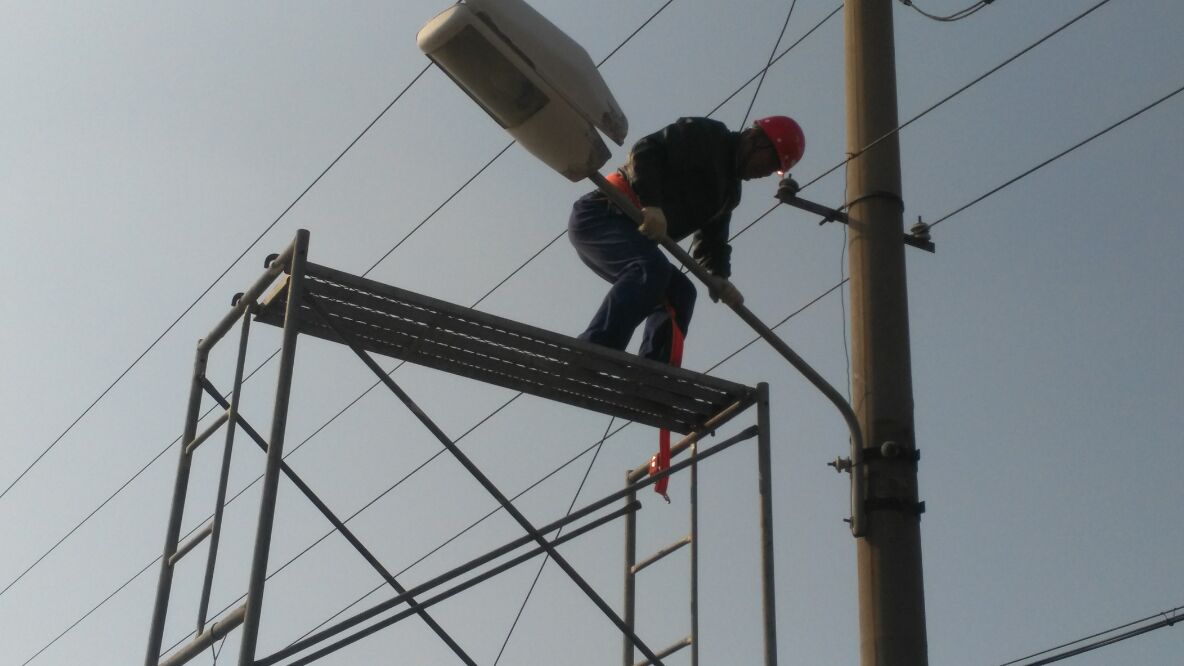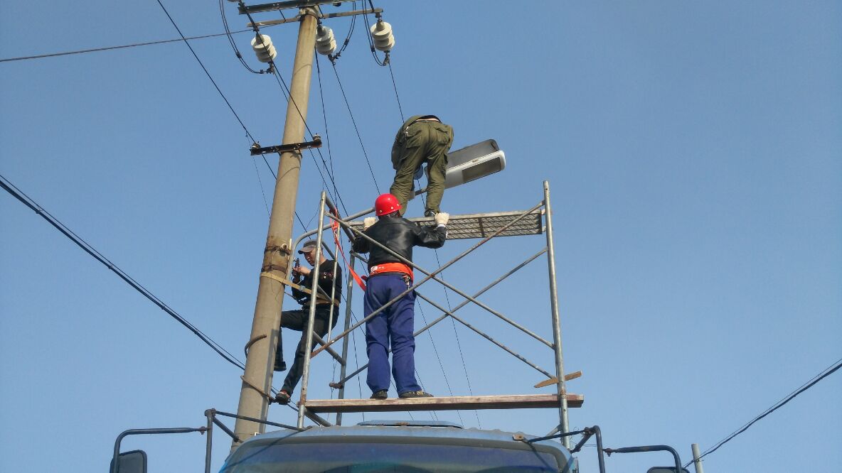 因受大風(fēng)影響,日曬制鹽公司路燈部分支架被吹變向、燈蓋被吹開,存在安全隱患。為不影響職工日常行走,消除隱患,4月17日下午,該公司認(rèn)真組織專業(yè)人員對路燈進(jìn)行維修,在維修現(xiàn)場,安全人員現(xiàn)場指揮,操作人員能嚴(yán)格執(zhí)行安全操作規(guī)程,經(jīng)過2小時,共修理8盞,接斷線6盞,消除了隱患,為職工上下班提供了保障。(機(jī)電)