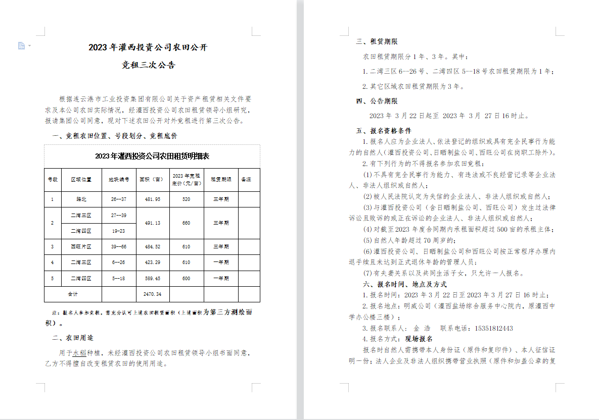 2023年灌西投資公司農(nóng)田公開競租三次公告