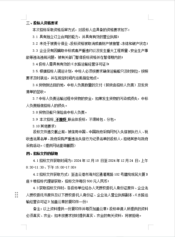 連云港宵洋物流有限公司原鹽內(nèi)河船舶運輸合格供應商采購招標公告