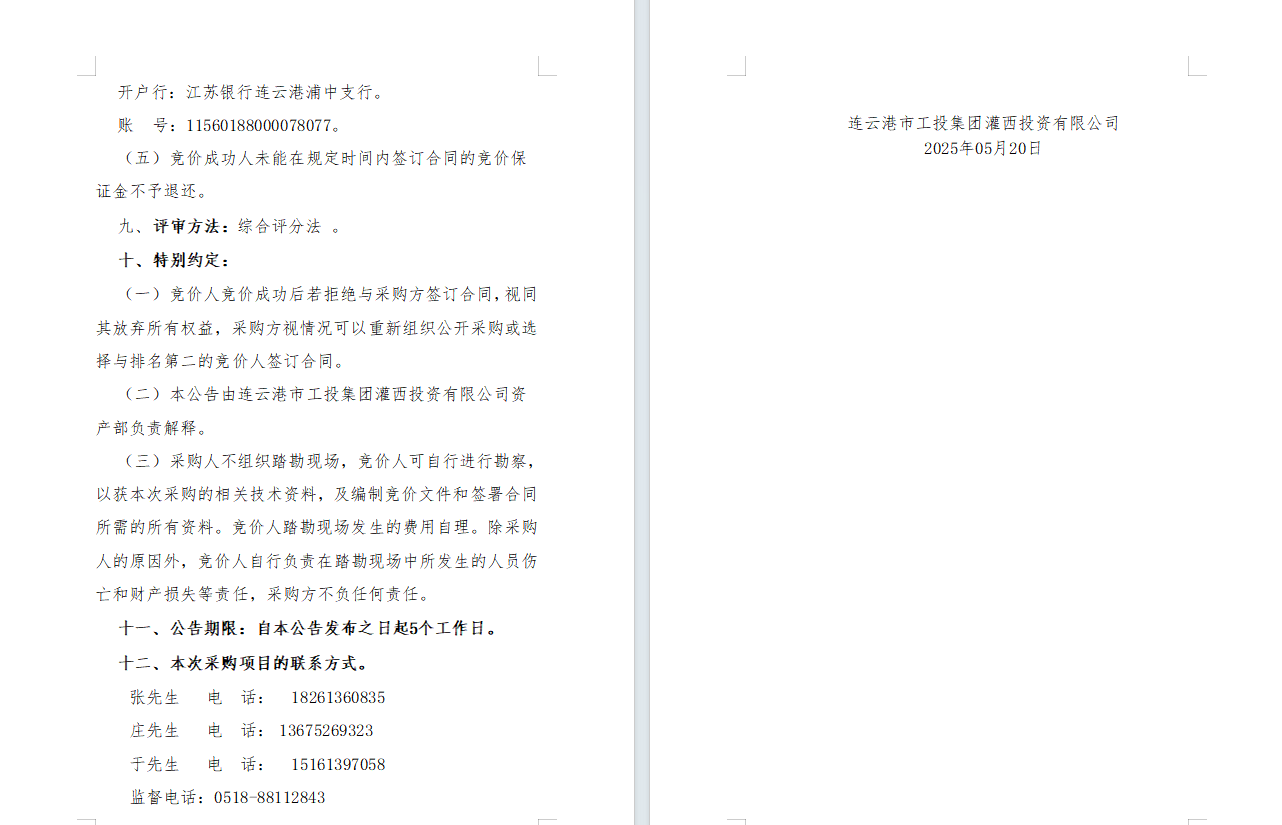 2025年度連云港市工投集團灌西投資有限公司職工體檢項目采購公告