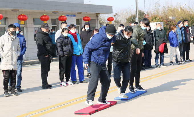 1月29日,我公司開展“迎新春”趣味運(yùn)動(dòng)會。黨委書記、董事長、總經(jīng)理朱桂玉,黨委副書記、紀(jì)委書記、工會主席曹開明,總經(jīng)理助理王洋分別為獲獎(jiǎng)人員頒獎(jiǎng)。 活動(dòng)開始前,黨委副書記、紀(jì)委書記、工會主席曹開明對本次活動(dòng)提出要求,并提前祝大家新春快樂、闔家歡樂、萬事如意。本次活動(dòng)共設(shè)置了一字長龍運(yùn)球、沙包投擲、接力跑、跳大繩、同心擊鼓等8個(gè)職工喜聞樂見的項(xiàng)目。活動(dòng)現(xiàn)場,職工熱情高漲,既緊張激烈,又歡樂無限,歡呼聲、吶喊聲此起彼伏。此次趣味運(yùn)動(dòng)會不但豐富了職工業(yè)余文化生活,而且提升了職工之間的團(tuán)隊(duì)協(xié)作能力,在放松心情、舒緩壓力的同時(shí),增強(qiáng)了職工隊(duì)伍的凝聚力和戰(zhàn)斗力。(金宣)
