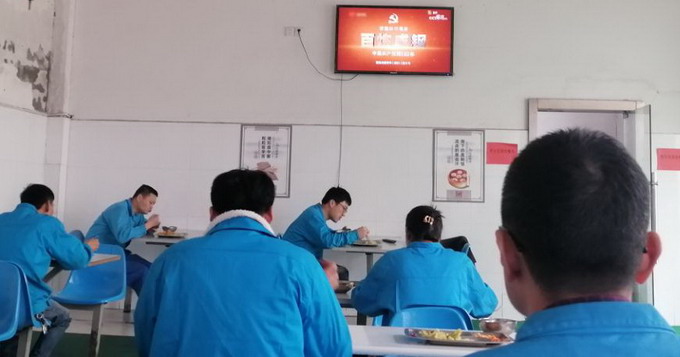 餐廳電視循環(huán)播放《百煉成鋼:中國共產(chǎn)黨的100年》《孤島32年》及紅色電影等學(xué)習(xí)教育視頻