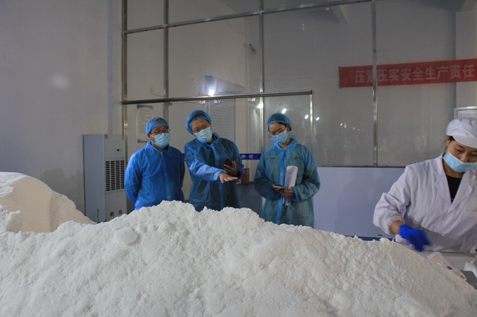 檢查組一行查看了公司相關(guān)臺(tái)賬資料,實(shí)地查看了加工鹽車間、包裝鹽車間、雪花鹽車間、化驗(yàn)室等;檢查組一行對(duì)我公司食品安全管理工作給予肯定,并對(duì)下一步隱患排查整改工作提出了意見和建議。