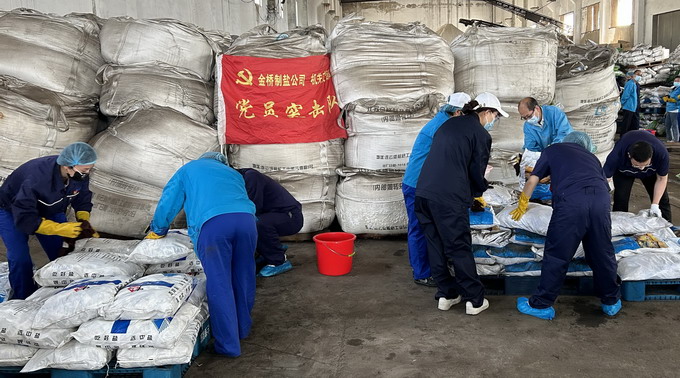 6月6日-6月7日,我公司黨委開展“我為黨旗增光添彩”志愿服務活動。機關(guān)支部共30名黨員協(xié)助車間整理庫房,共整理成品鹽130余噸?;顒拥拈_展進一步發(fā)揮了“兩個作用”,積極踐行了志愿服務精神,為車間一線辦實事、解難題。(金宣)