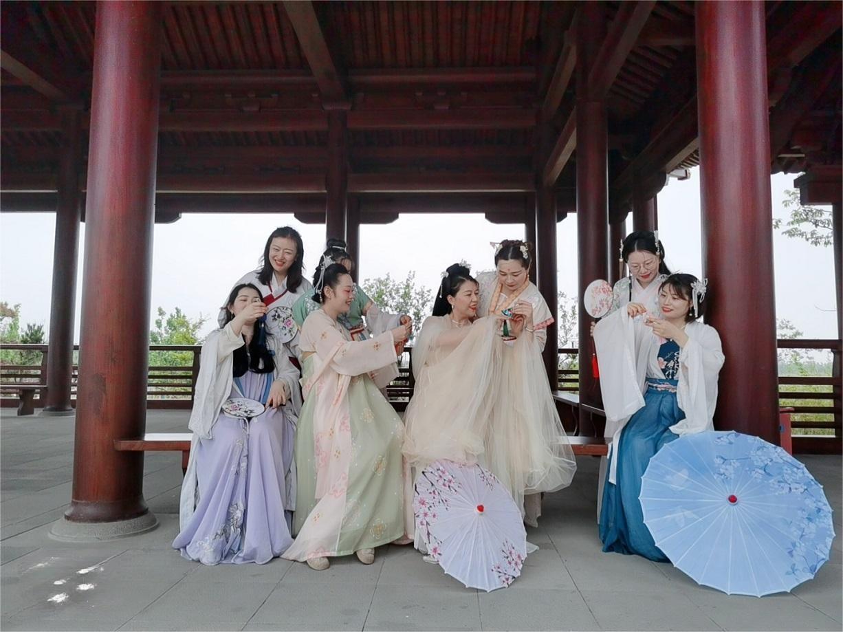 活動現(xiàn)場,來自金融板塊各部門的20余名員工,身著漢、唐、宋、明不同形制華美優(yōu)雅、端莊秀麗的漢服,攜手起舞,漫步在園博園的各個角落,為這個現(xiàn)代都市帶來了一抹醉人、古樸的文化氣息。著漢服的員工們重溫古代禮儀和儀式,感受中華文化的深厚底蘊。還開展了誦讀經(jīng)典、繡荷包、刺五毒、趣味吃粽子、“粽”橫四海等豐富多彩的端午主題文化活動,充分展現(xiàn)了員工生動的活力和熱情。在錦鯉游動、荷塘月色、彩蝶翩翩的園內(nèi),大家沉浸于濃濃的中華古風(fēng)之中,用心感受著中華傳統(tǒng)文化的獨特魅力。此次活動展現(xiàn)了增強員工的凝聚力和歸屬感,為公司的發(fā)展注入了新的活力。
