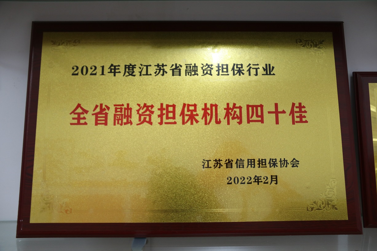 被省擔保協(xié)會評為“江蘇省2021年度融資性擔保機構(gòu)四十佳”。