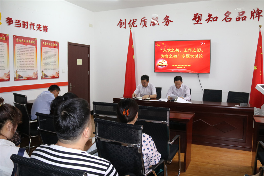 | 為貫徹落實(shí)集團(tuán)黨委、公司黨支部“不忘初心、牢記使命”主題教育工作部署,進(jìn)一步抓好學(xué)習(xí)研討,加深全體黨員對(duì)“十二字”總要求的理解把握。9月26日下午,公司黨支部組織領(lǐng)導(dǎo)干部及全體黨員開(kāi)展“入黨之初、工作之初、為官之初”專題大討論。