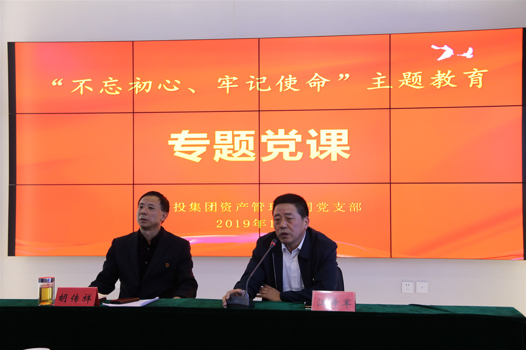 | 為教育引導(dǎo)黨員干部不忘初心,牢記使命,擔(dān)當(dāng)作為,開(kāi)拓創(chuàng)新,奮力譜寫金融工作新篇章,10月10日下午,資產(chǎn)管理公司黨支部舉行“不忘初心、牢記使命”主題教育黨支部書記講黨課活動(dòng),資產(chǎn)管理公司黨支部書記、董事長(zhǎng)胡傳祥同志講授“初心不改,擔(dān)當(dāng)作為,創(chuàng)造無(wú)愧于時(shí)代的工作業(yè)績(jī)”主題黨課,集團(tuán)黨委第一指導(dǎo)組同志到會(huì)指導(dǎo)。