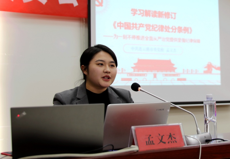 學(xué)《條例》,明紀律。特邀請市委黨校孟文杰老師,對新修訂的《中國共產(chǎn)黨紀律處分條例》進行專題輔導(dǎo)。孟老師從深刻理解《條例》修訂的重要亮點、準確把握《條例》修訂的主旨要義、切實抓好《條例》的貫徹執(zhí)行三個方面作了精彩解讀,并堅持理論密切聯(lián)系實際,結(jié)合與修改內(nèi)容相關(guān)的案例及視頻,提醒廣大黨員干部嚴于律己、防微杜漸,讓全體黨員干部受益匪淺。