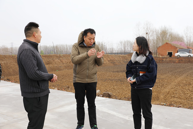 4月2日上午,冒著淅瀝瀝的春雨,青口公司副總經(jīng)理許太冬帶領樊家選、趙華兵兩位技術指導小組成員,來到海頭鎮(zhèn)龍河村新復墾的240畝土地現(xiàn)場,與結(jié)對聯(lián)建的龍河村村委成員熱切交流,為新復墾的土地發(fā)展規(guī)劃出謀劃策。