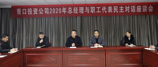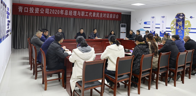 12月9日下午,在泰祥公司二樓會議室召開青口投資公司2020年總經(jīng)理與職工代表民主對話座談會,公司總經(jīng)理史祥平出席會議,工會主席梁永主持。職工代表們就工作中遇到的困難、生活福利保障、員工培訓、公司未來規(guī)劃等熱點難點問題向總經(jīng)理提問,總經(jīng)理史祥平在耐心細致聽取職工代表們的問題后,一一詳細解答。