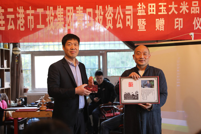 10月16日,青口投資公司米業(yè)營銷中心在海州區(qū)清風書屋開展“鹽田玉大米品鑒會暨贈印活動”。投資公司董事長胡傳法、中國書法家協(xié)會會員汪鐵穎以及部分連云港市海州區(qū)書法家協(xié)會會員參加活動。