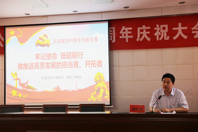 為了慶祝中國共產(chǎn)黨建黨99周年,繼承和發(fā)揚(yáng)黨的光榮傳統(tǒng),彰顯基層黨組織的戰(zhàn)斗堡壘作用和黨員先鋒模范作用,6月28日上午,青口投資公司隆重召開紀(jì)念建黨99周年慶祝大會(huì)暨“七一”表彰大會(huì)。會(huì)議由黨委副書記、工會(huì)主席梁永主持,全體領(lǐng)導(dǎo)班子成員、各單位黨政負(fù)責(zé)人、優(yōu)秀黨員代表、機(jī)關(guān)全體管理人員參加會(huì)議。
